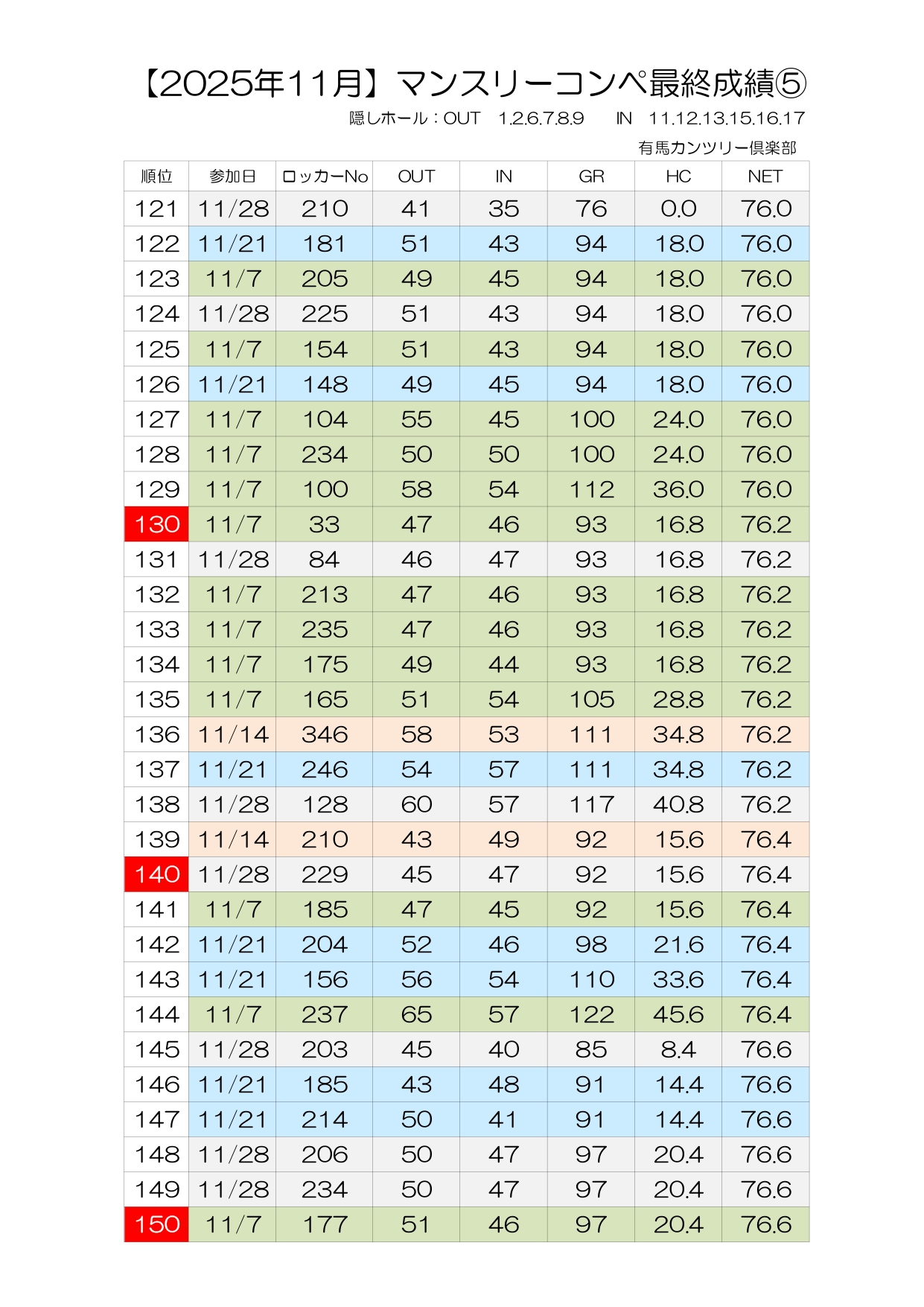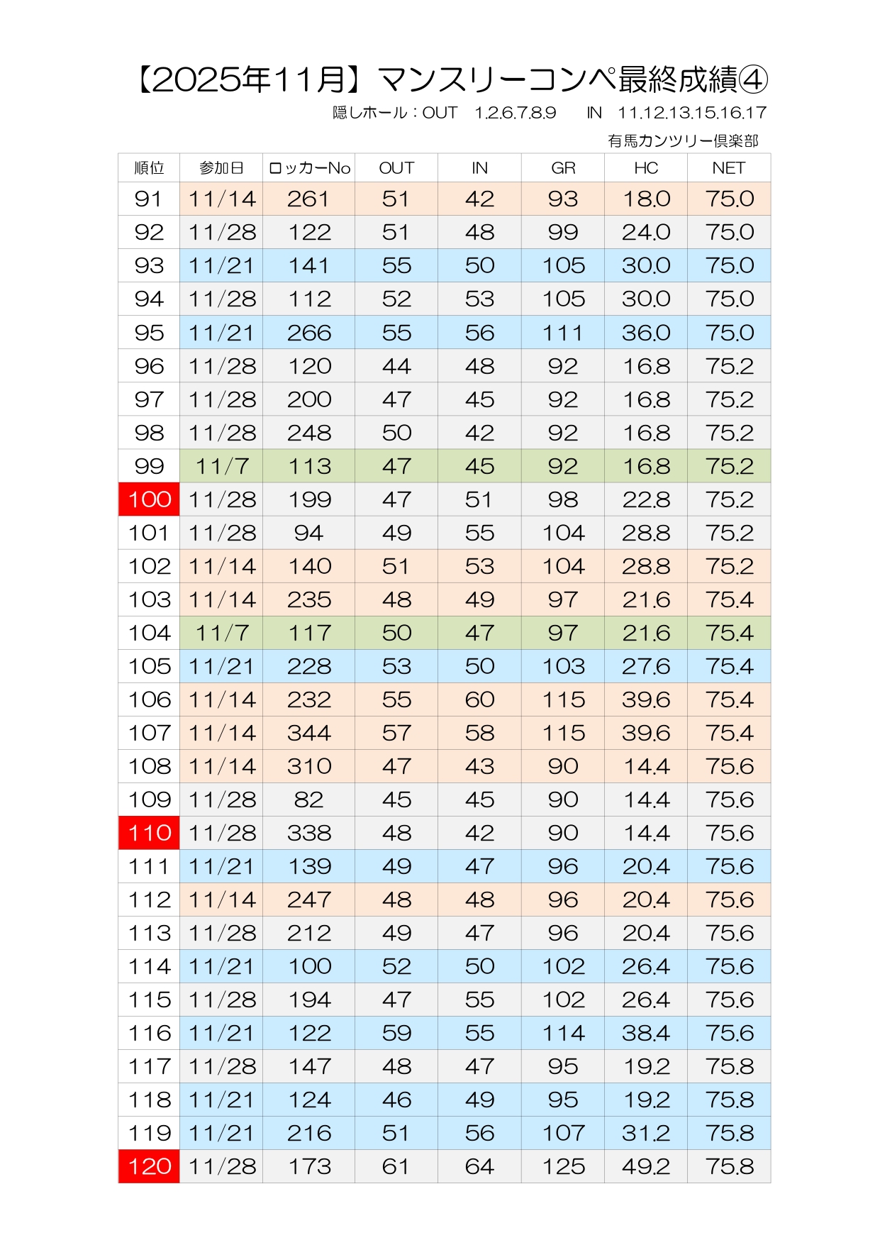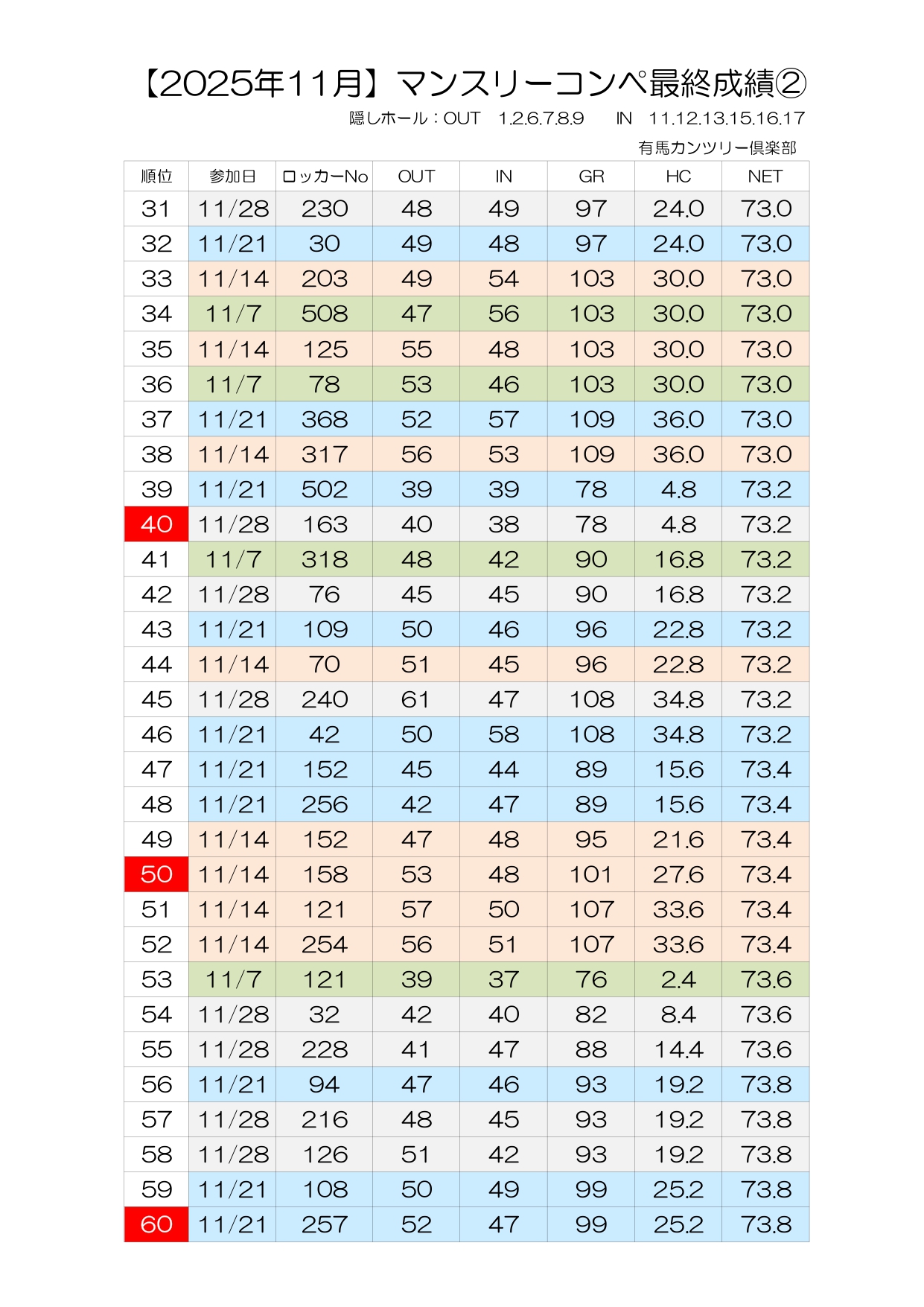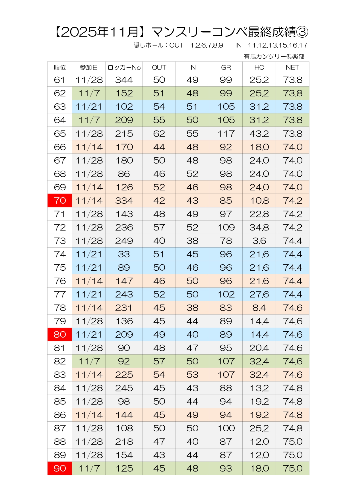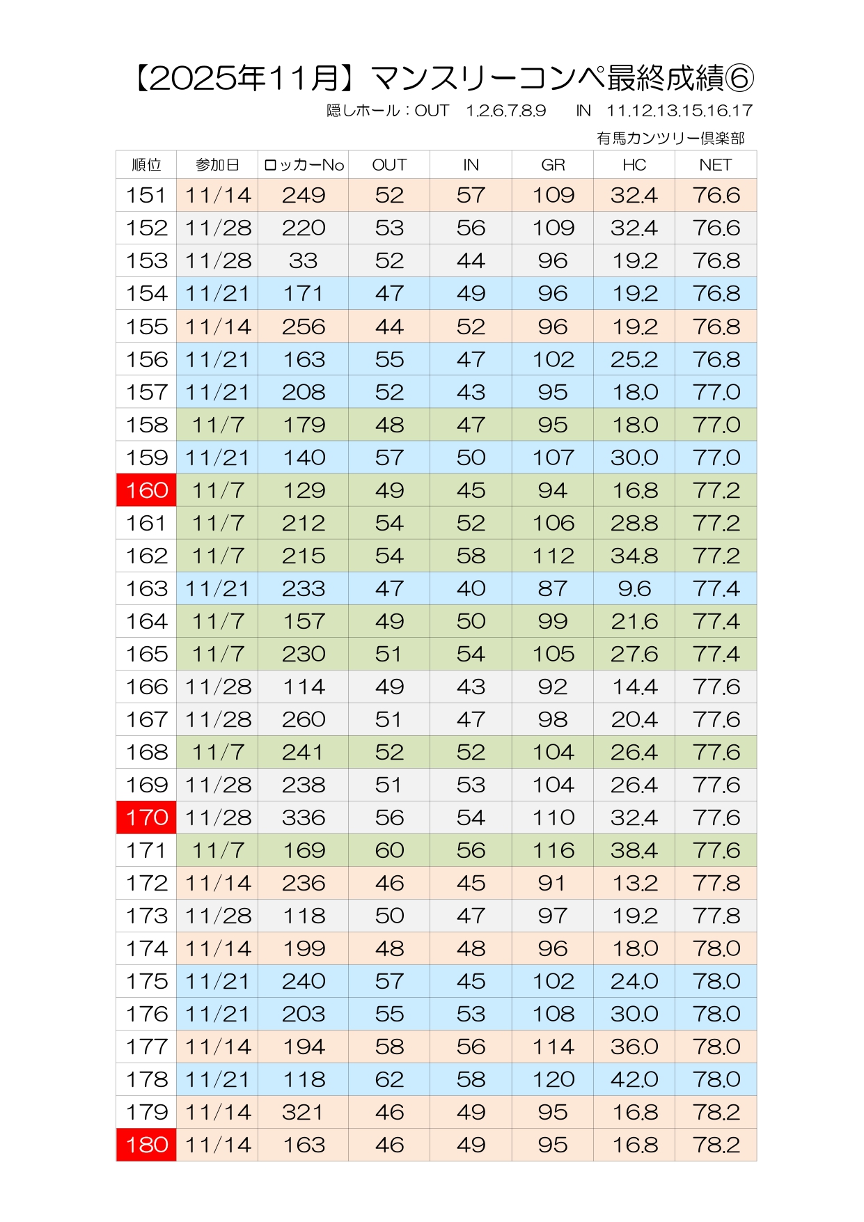 それでは11月度マンスリーコンペ最終成績(275名)を発表いたします。