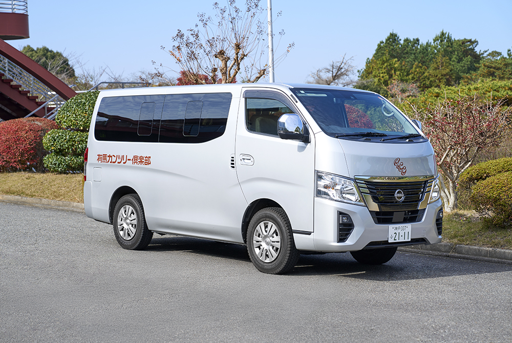 三田駅(JR・神戸電鉄)からゴルフ場まで直通で、クラブバスにて送迎しております。三田駅からゴルフ場までは7〜9時の間で、ゴルフ場から三田駅までは15〜17時の間で、1時間に1本運行しています。※ご利用には事前予約が必須となります。